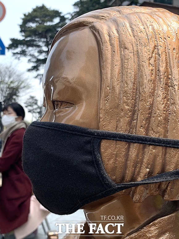 [TF포토] 마스크 쓴 소녀상