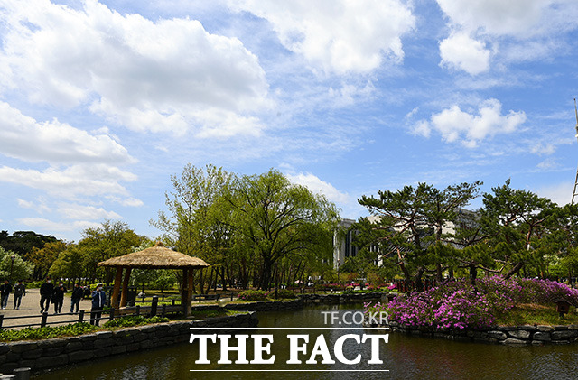 [더팩트ㅣ이동률 기자] 화창한 날씨를 보인 21일 오후 서울 영등포구 여의도공원을 찾은 직장인들이 점심시간을 이용해 봄기운을 만끽하고 있다