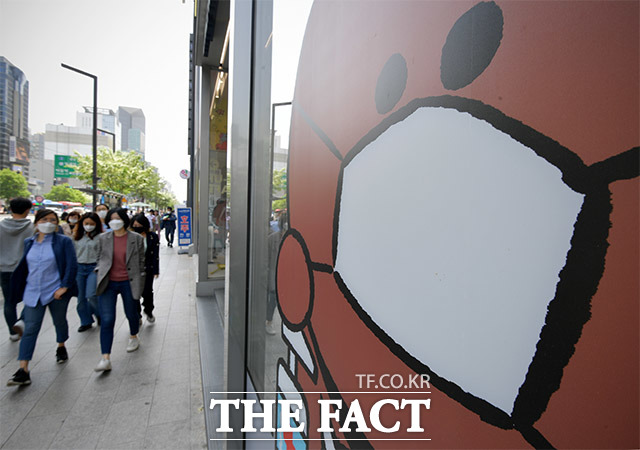 [더팩트ㅣ이덕인 기자] 코로나19 집단감염이 계속 확산되고 있는 11일 오후 서울 강남구 강남대로 일대가 마스크를 쓴 사람들로 붐비고 있다.