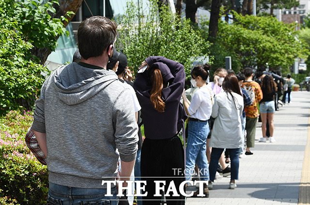 [더팩트ㅣ이동률 기자] 이태원 클럽 관련 코로나19 확진자가 증가세를 보이고 있는 11일 오후 서울 용산구보건소에 마련된 선별진료소를 찾은 시민들이 검사를 받기 위해 줄을 서고 있다.
