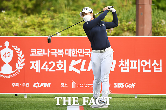 [더팩트ㅣ양주=배정한 기자] 한국여자프로골프(KLPGA) 투어 KLPGA 챔피언십 1라운드가 14일 오전 경기도 양주시 레이크우드CC에서 열린 가운데 조정민이 10번홀에서 티샷을 하고 있다.