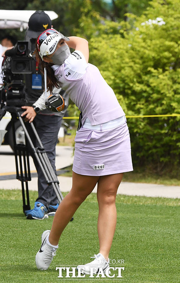 [더팩트ㅣ양주=배정한 기자] 한국여자프로골프(KLPGA) 투어 KLPGA 챔피언십 1라운드가 14일 경기도 양주시 레이크우드CC에서 열린 가운데 조아연이 1번홀에서 티샷을 하고 있다.