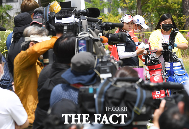 [더팩트ㅣ양주=배정한 기자] 한국여자프로골프(KLPGA) 투어 KLPGA 챔피언십 1라운드가 14일 경기도 양주시 레이크우드CC에서 열린 가운데 최혜진(왼쪽)이 1번홀에서 티샷 준비를 하고 있다.