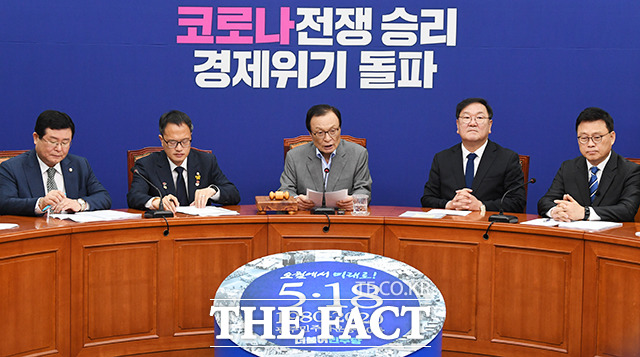 [더팩트ㅣ국회=배정한 기자] 이해찬 더불어민주당 대표(가운데)가 15일 오전 서울 여의도 국회에서 열린 더불어민주당 최고위원회의에 참석해 모두발언을 하고 있다.