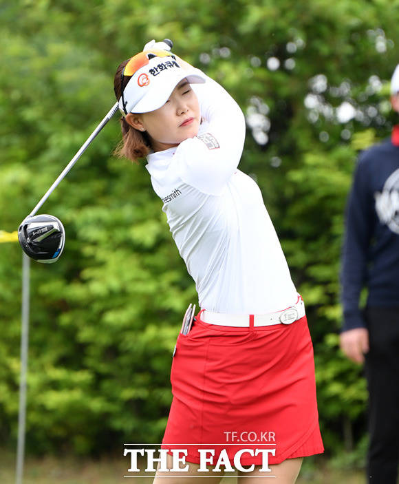 [더팩트ㅣ양주=임세준 기자] 임희정과 배선우, 박현경이 17일 오전 경기도 양주시 레이크우드CC에서 열린 제42회 KLPGA 챔피언십 4라운드 경기에 참석해 경기를 펼치고 있다.
