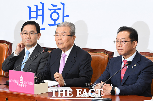 [더팩트ㅣ국회=배정한 기자] 김종인 미래통합당 비상대책위원장(가운데)이 4일 오전 서울 여의도 국회에서 열린 미래통합당 비상대책위원회의에 참석해 발언을 하고 있다.
