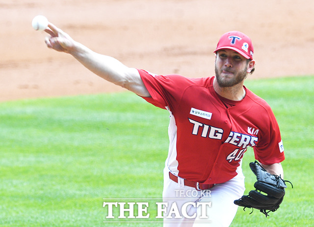 [더팩트ㅣ배정한 기자] 2020 프로야구 두산 베어스와 기아 타이거즈의 경기가 6일 오후 서울 송파구 잠실야구장에서 열렸다. 1회말 기아 선발투수 가뇽이 힘찬 투구를 하고 있다. hany@tf.co.kr 사진영상기획부 photo@tf.co.kr