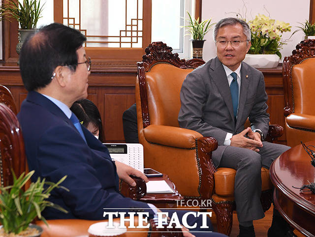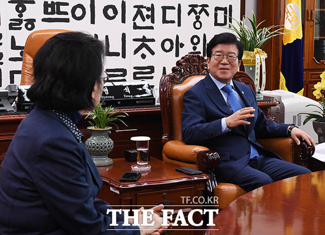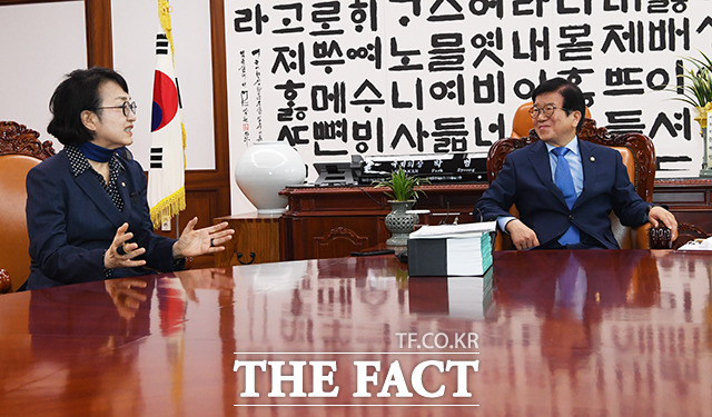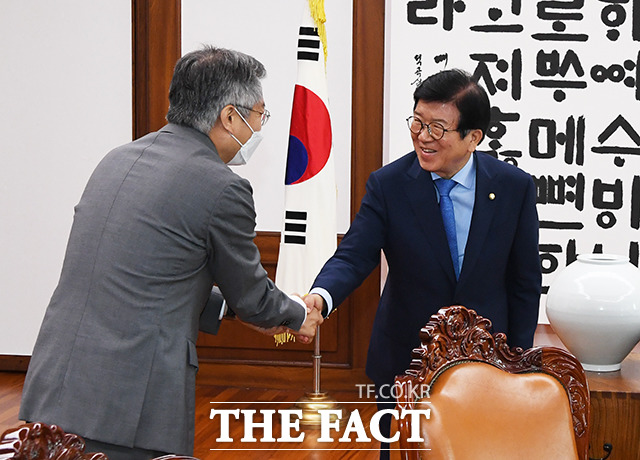[TF사진관] 최강욱-김진애, '방벽석 국회의장 예방'