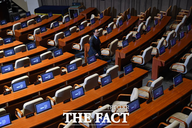 [더팩트 | 국회=남윤호 기자] 주호영 미래통합당 원내대표가 15일 오후 서울 여의도 국회에서 열린 본회의에 참석해 의사진행발언을 마친 뒤 회의장을 나서고 있다.