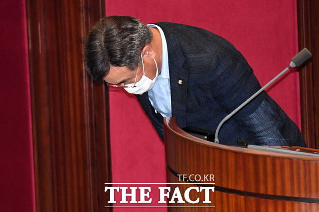[더팩트 | 국회=남윤호 기자] 국회 법제사법위원장으로 선출된 윤호중 더불어민주당 의원이 15일 오후 서울 여의도 국회 본회의장에서 당선 인사를 하고 있다.