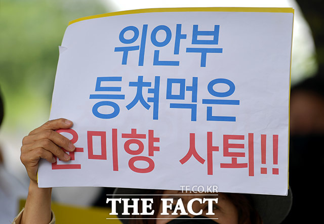 [더팩트ㅣ이덕인 기자] 보수성향의 자유연대 등 단체들이 17일 오후 서울 종로구 서머셋 팰리스 호텔 앞에서 정의기억연대 해체 및 윤미향 더불어민주당 의원 사퇴 규탄 집회를 열고 있다.thelong0514@tf.co.kr사진영상기획부 photo@tf.co.kr