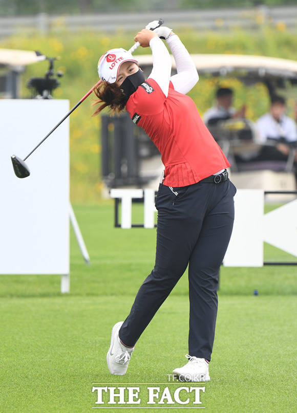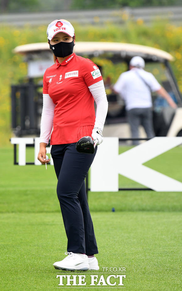 [더팩트ㅣ인천=임세준 기자] 최혜진 선수가 18일 오후 인천 서구 베어즈베스트청라GC에서 열린 KLPGA 투어 기아자동차 한국여자오픈 대회에 참가해 마스크를 쓰고 경기를 펼치고 있다.