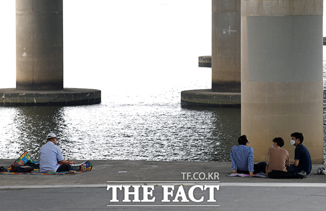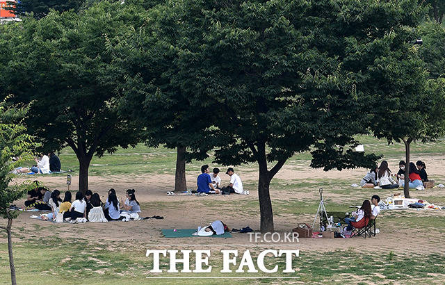 [더팩트|이선화 기자] 서울 낮 최고기온이 27도까지 오른 18일 오후 서울 영등포구 여의도 한강공원에서 시민들이 휴식을 취하고 있다.