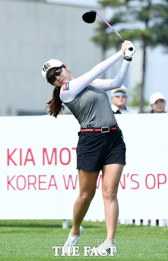 [더팩트ㅣ인천=남용희 기자] 이보미가 20일 인천 서구 베어즈베스트청라GC에서 열린 KLPGA 투어 기아자동차 제34회 한국여자오픈 대회 3라운드에 참가해 10번 홀에서 티샷을 하고 있다.