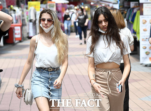 [더팩트ㅣ이동률 기자] 서울 최고기온이 30도 가까이 오른 3일 오후 서울 마포구 홍대입구역 인근의 시민들과 관광객들이 가벼운 옷차림으로 거리를 걷고 있다. 이날 기상청은 동해상에 위치한 고기압의 영향으로 전국이 구름이 많은 무더운 날씨를 보일 것으로 전망했다.