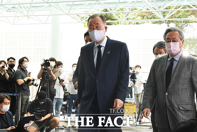 [더팩트ㅣ배정한 기자] 반기문 전 유엔 사무총장(왼쪽)이 10일 서울 종로구 서울대학교병원 장례식장에 마련된 고 박원순 서울시장의 빈소로 들어서고 있다. 박 시장은 오늘 오전 0시 30분쯤 서울 북악산 숙정문 인근에서 숨진 채 발견됐다. 사망 현장에선 박 시장의 가방과 명함, 필기도구 등이 수거됐다.