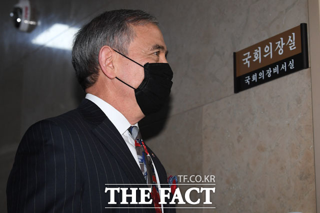 [더팩트 | 국회=남윤호 기자] 해리 해리스 주한 미국대사가 14일 오전 박병석 국회의장을 예방하기 위해 서울 여의도 국회 의장실로 향하고 있다.
