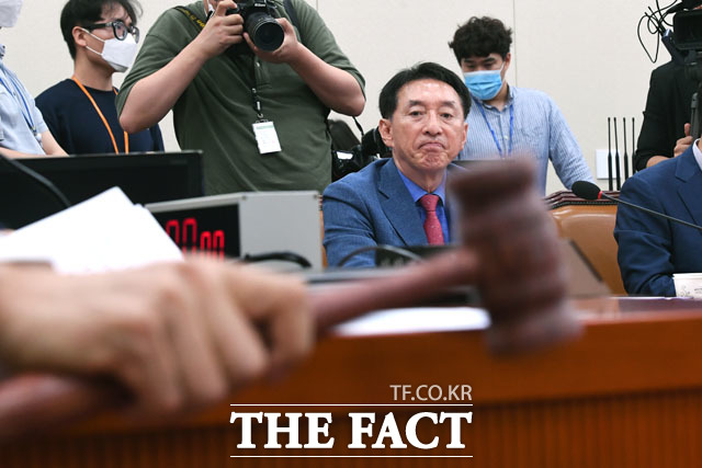 [더팩트 | 국회=남윤호 기자] 야당 간사로 선임된 미래통합당 소속 김석기 간사가 14일 오전 서울 여의도 국회에서 열린 외교통일위원회 전체회의에서 간사 선임안을 통과 시킨 송영길 외교통일위원장을 바라보고 있다.