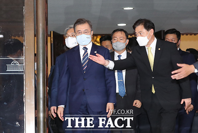 [더팩트ㅣ국회=배정한 기자] 문재인 대통령(왼쪽)이 16일 오후 국회에서 열린 21대 국회 개원식에서 개원 연설을 마친 뒤 본회의장을 나서고 있다.