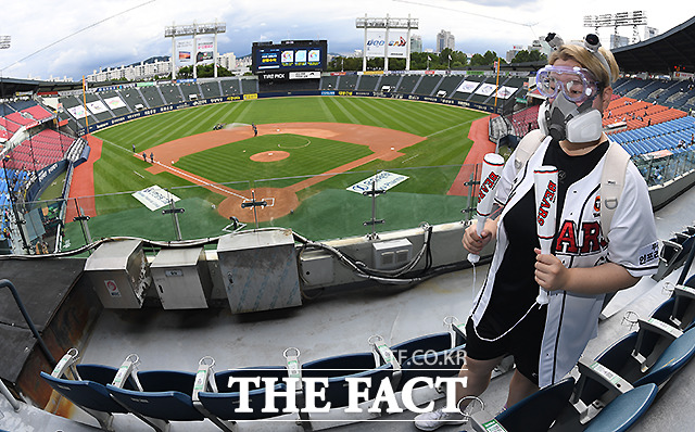 [TF포토] 마스크 무장하고 야구장 찾은 두산팬