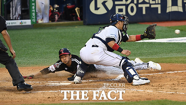 [더팩트ㅣ이새롬 기자] 2020프로야구 KBO리그 두산베어스와 LG트윈스의 경기가 26일 오후 서울 잠실야구장에서 열렸다. LG 김용의가 유강남의 역전 2타점 적시타에 홈에서 슬라이딩 세이프되고 있다. saeromli@tf.co.kr 사진영상기획부 photo@tf.co.kr
