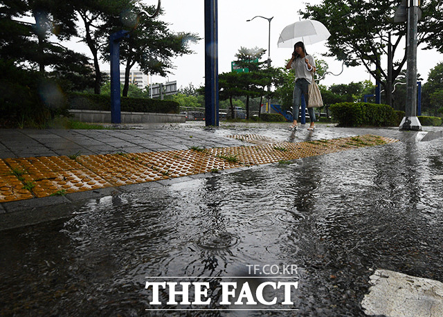 [더팩트ㅣ이동률 기자] 전국에 장맛비가 내리는 29일 오전 서울 마포구 디지털미디어시티역 인근의 시민들이 우산을 쓰고 발걸음을 재촉하고 있다.