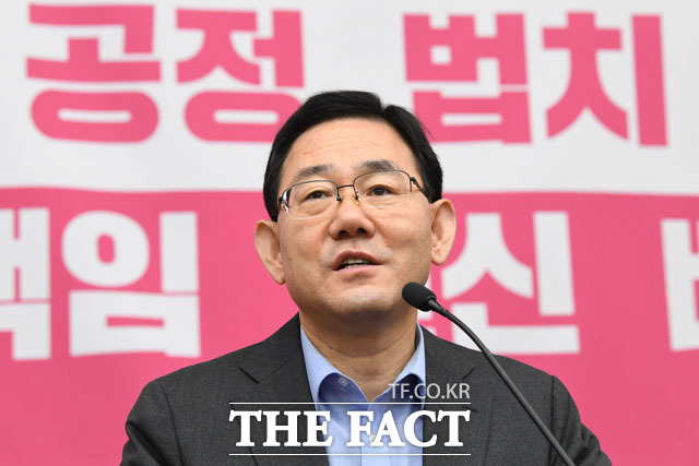 [더팩트 | 국회=남윤호 기자] 주호영 미래통합당 원내대표가 29일 오전 서울 여의도 국회에서 열린 긴급의원총회에 참석해 발언하고 있다.