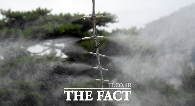[더팩트ㅣ이동률 기자] 서울 낮 기온이 34도까지 올라 무더운 날씨를 보인 20일 오후 서울 종로구 청와대 분수대에 설치된 '쿨링포그'가 더위를 식히고 있다.