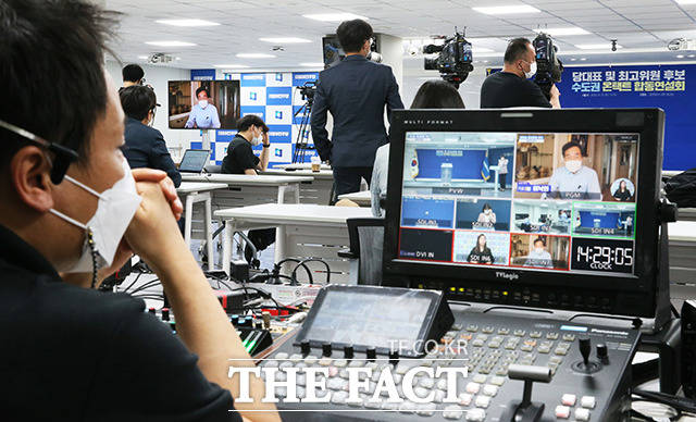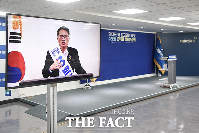 [TF사진관] 코로나19 여파, 영상으로 진행된 민주당 당대표 합동연설회