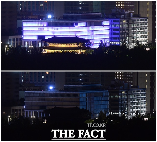 [더팩트ㅣ이동률 기자] '제17회 에너지의 날'인 22일 오후 서울 종로구 부암동에서 바라본 광화문 일대가 조명을 밝힌 모습(위)과 오후 9시부터 5분간 소등 한 모습이 대조를 보이고 있다.fedaikin@tf.co.kr사진영상기획부 photo@tf.co.kr