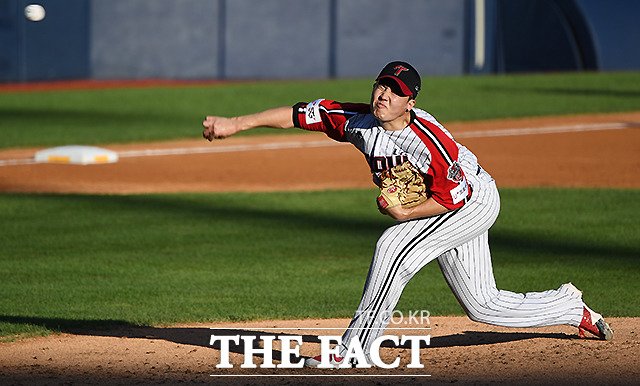 [더팩트ㅣ이새롬 기자] 23일 서울 송파구 잠실야구장에서 2020 KBO리그 LG 트윈스와 한화 이글스의 경기가 열린 가운데, LG 선발 임찬규가 투구하고 있다.
