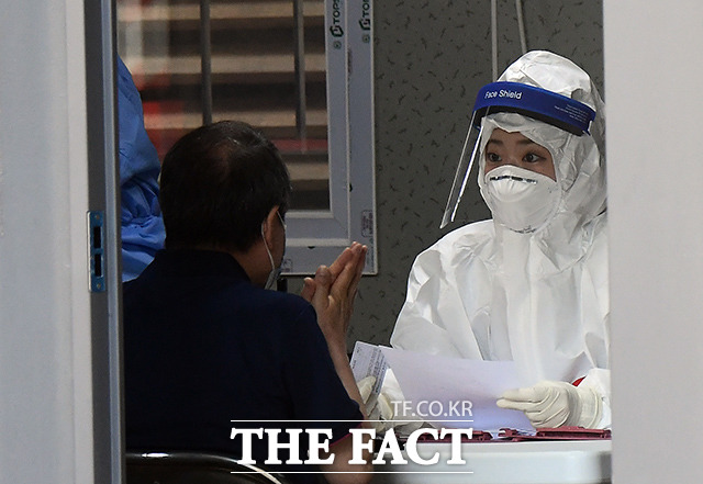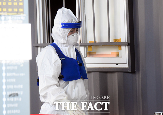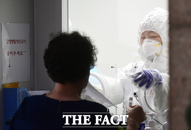[더팩트ㅣ이동률 기자] 코로나19 신규 확진자 수가 연일 증가하고 있는 24일 오전 서울 성북구 성북구보건소에 마련된 선별진료소에서 의료진이 검체 채취를 준비하고 있다.
