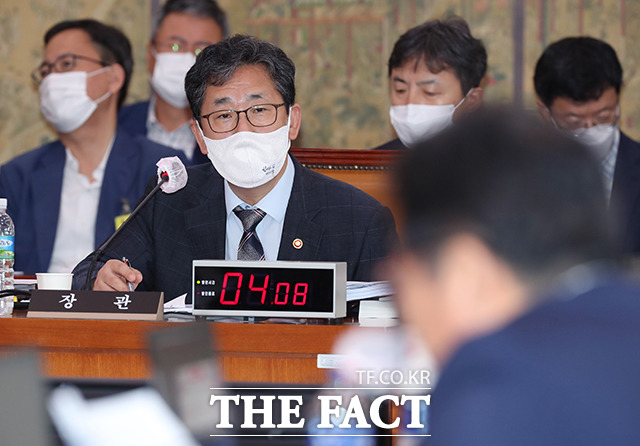 [더팩트ㅣ국회=배정한 기자] 박양우 문화체육관광부 장관이 25일 오전 서울 여의도 국회에서 열린 문화체육관광위원회 전체회의에 출석해 의원들의 질의에 답변하고 있다.