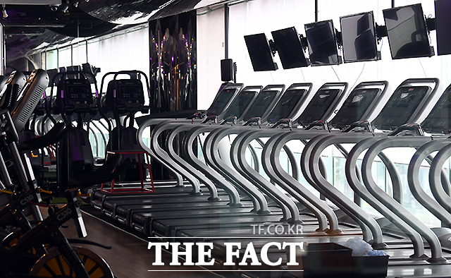 [더팩트ㅣ이새롬 기자] 신종 코로나바이러스감염증(코로나19)의 확산으로 수도권의 '사회적 거리두기' 2.5단계가 시행된 31일 오전 서울 종로구 대학로의 한 피트니스 센터가 운영을 중지해 있다.