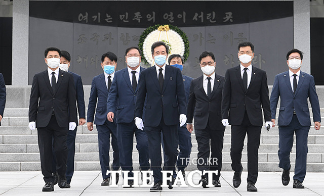 [TF사진관] '국난 극복 도와주소서!'...현충원 참배 이낙연 당 대표 '기원'