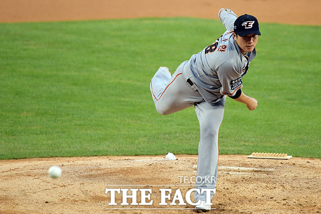 [더팩트|이선화 기자] 1일 오후 서울 송파구 잠실야구장에서 2020 KBO리그 두산 베어스와 한화 이글스의 경기가 열린 가운데 한화 선발 장시환이 투구를 하고 있다.