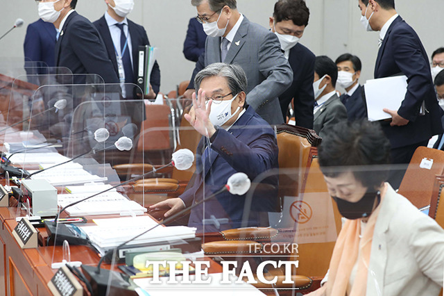 [더팩트ㅣ국회=배정한 기자] 노영민 청와대 비서실장(가운데)이 2일 오후 서울 여의도 국회에서 열린 대통령 비서실 등에 대한 결산 심사 및 업무 보고를 위한 운영위원회 전체회의데 참석해 의원들과 인사를 하고 있다.