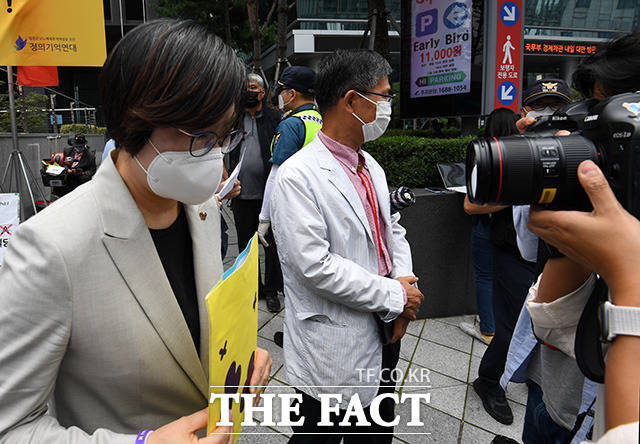 [더팩트ㅣ남용희 기자] 이나영 정의연 이사장이 16일 오후 서울 종로구 옛 일본대사관 앞에서 진행된 제1,457차 일본군 성노예제 문제해결을 위한 정기 수요시위 기자회견에 참석해 주간보고를 하고 있다.