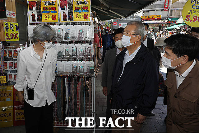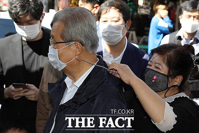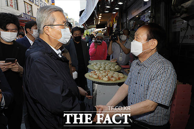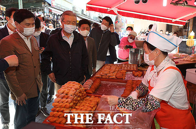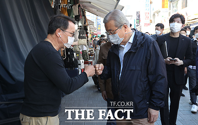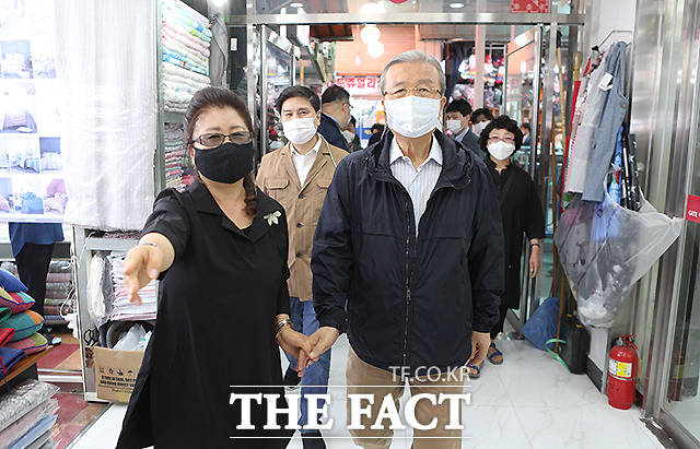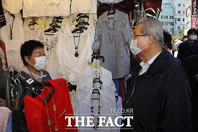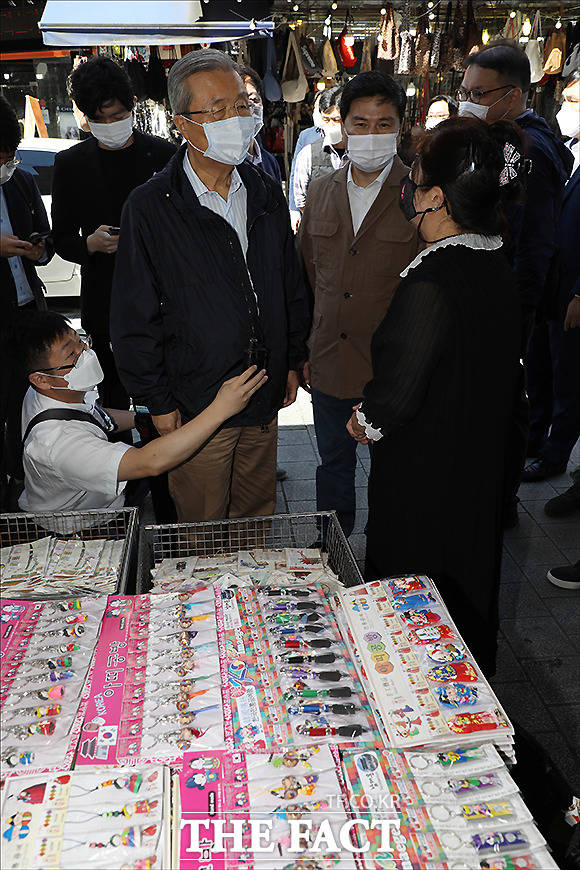 [더팩트ㅣ이새롬 기자] 김종인 국민의힘 비상대책위원장이 18일 오전 서울 중구 남대문시장을 찾아 코로나19 (신종 코로나 바이러스 감염증) 여파 등으로 어려움을 겪는 상인들을 만나 대화를 하고 있다.