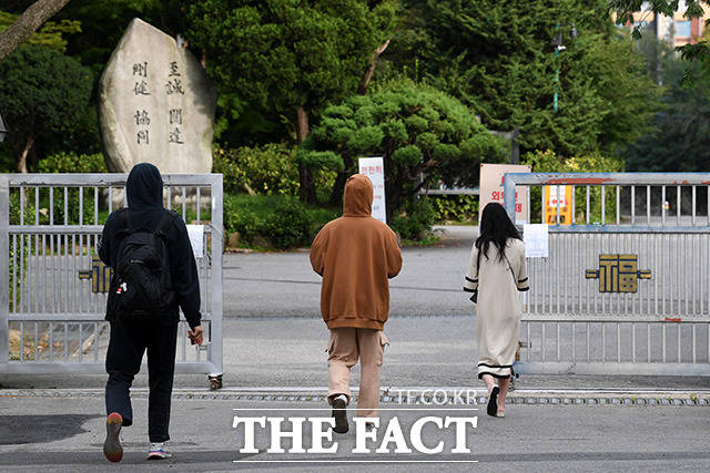 [더팩트ㅣ남용희 기자] 서울과 경기 인천 등 수도권의 유·초·중·고 학생들의 등교가 재개된 21일 오전 서울 종로구 경복고등학교 학생들과 교직원 및 관계자가 등교를 하고 있다.