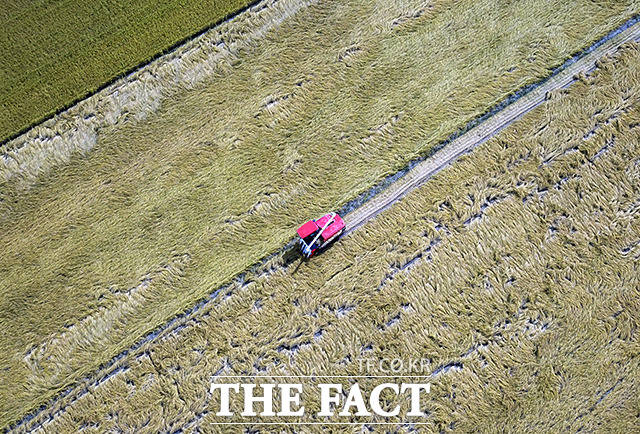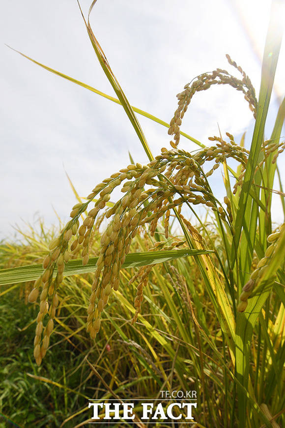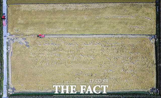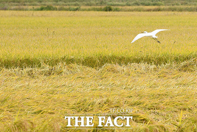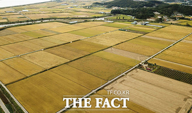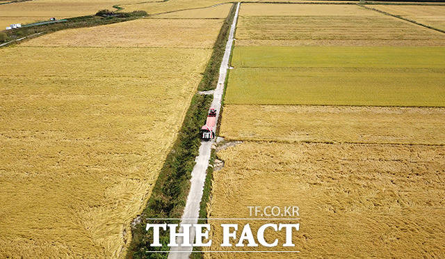 [더팩트ㅣ김포=남용희 기자] 완연한 가을 날씨를 보이는 23일 오전 경기도 김포시 하성면 일대가 황금빛으로 물들어 있다.