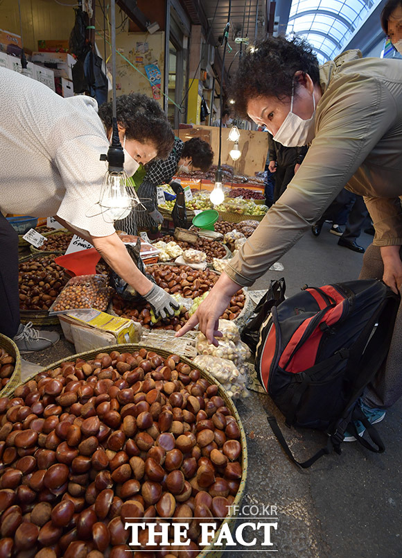 [더팩트ㅣ이덕인 기자] 추석 연휴를 일주일여 앞둔 23일 오전 서울 동대문구 청량리종합시장을 찾은 시민들이 장을 보고 있다.
