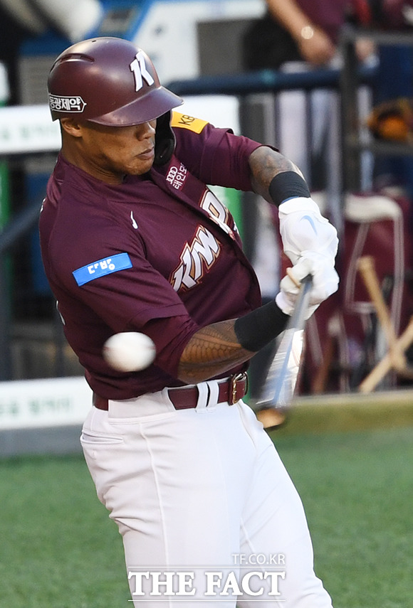 [더팩트ㅣ배정한 기자] 2020 KBO리그 두산 베어스와 키움 히어로즈의 경기가 26일 오후 서울 송파구 잠실야구장에서 열린 가운데 4회초 키움 러셀이 헛스윙을 하고 있다.