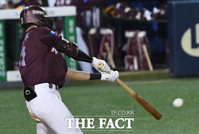 [더팩트ㅣ배정한 기자] 2020 KBO리그 두산 베어스와 키움 히어로즈의 경기가 26일 오후 서울 송파구 잠실야구장에서 열린 가운데 7회초 키움 이정후가 안타를 치고 있다.
