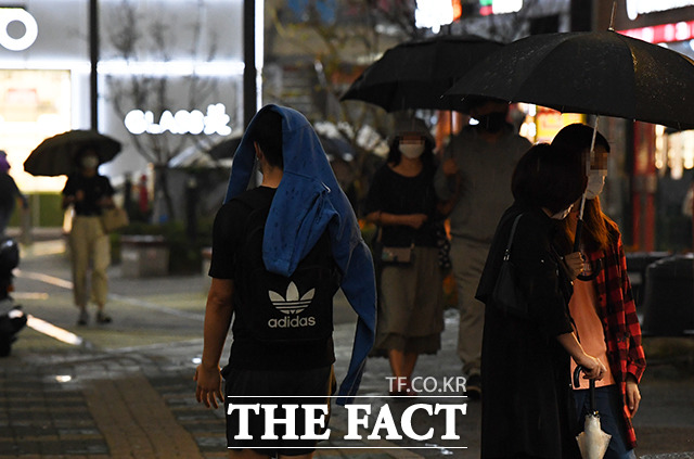 [더팩트ㅣ배정한 기자] 민족 최대의 명절 추석 연휴 첫째 날인 30일 오후 서울 강서구 염창역 인근에서 시민들이 갑자기 쏟아지는 소나기를 피해 발걸음을 옮기고 있다.