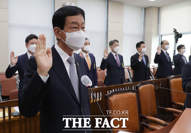 [더팩트 | 국회=남윤호 기자] 진영 행정안전부 장관이 7일 오전 서울 여의도 국회에서 열린 행정안전위원회의 행정안전부에 대한 국정감사에 출석해 선서를 하고 있다.
