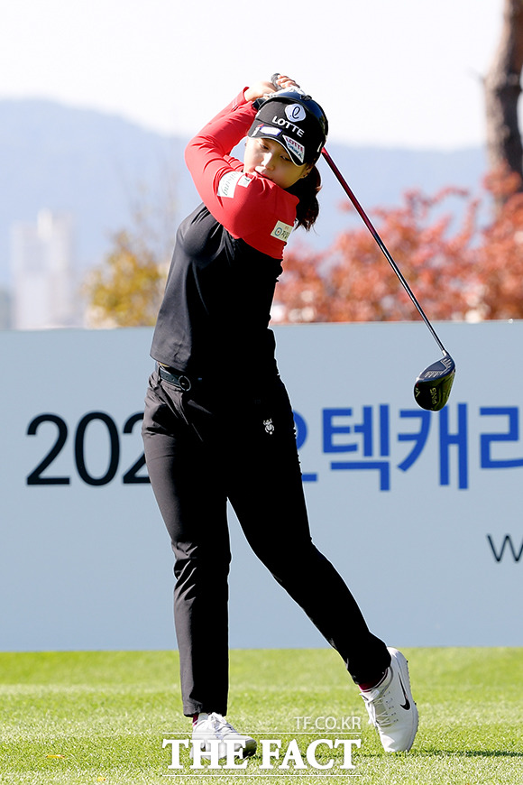 [더팩트|세종=이선화 기자] '2020 오텍캐리어 챔피언십' 1라운드가 8일 오전 세종특별자치시 세종필드골프클럽에서 열린 가운데 최혜진이 1번 홀 그라운드에서 티샷 연습을 하고 있다.