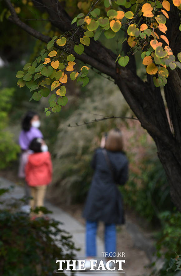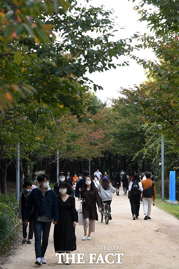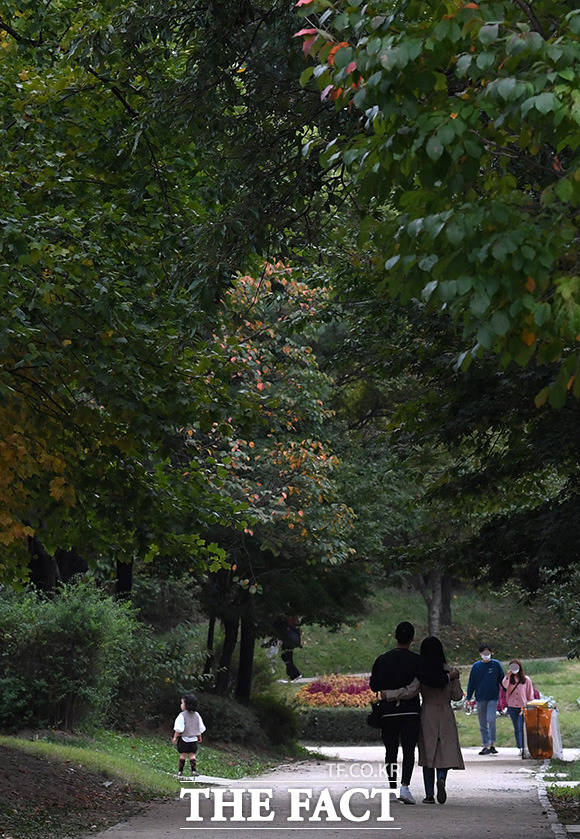 [더팩트ㅣ남용희 기자] 완연한 가을 날씨를 보인 10일 오후 주말을 맞아 서울 성동구 서울숲을 찾은 시민들이 가을 숲길에서 산책을 즐기고 있다.