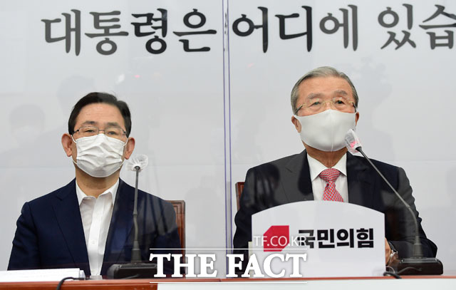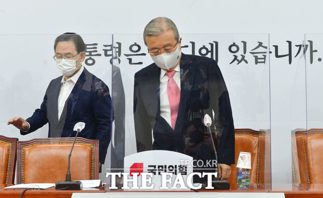 [더팩트 | 국회=남윤호 기자] 김종인 국민의힘 비상대책위원장(오른쪽)과 주호영 원내대표가 12일 오전 서울 여의도 국회에서 열린 비상대책위원회의에 참석해 대화를 나누고 있다.