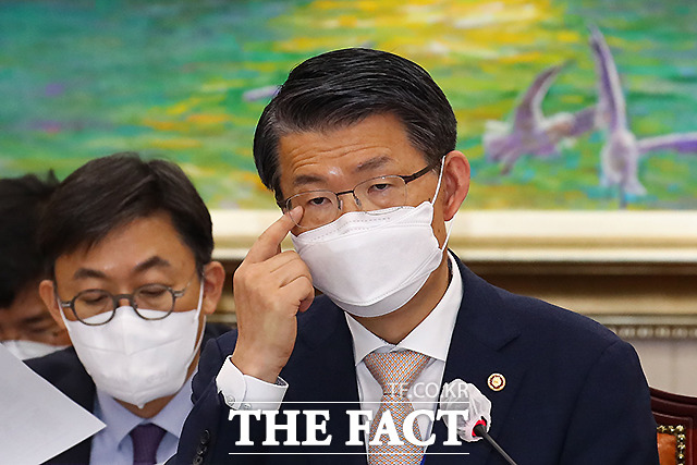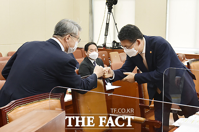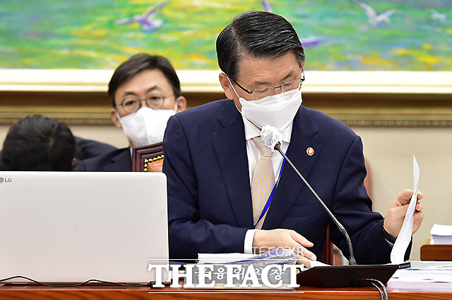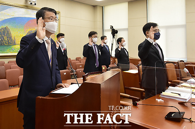 [더팩트ㅣ국회=이새롬 기자] 은성수 금융위원장이 12일 오전 서울 여의도 국회에서 열린 정무위원회의 금융위원회에 대한 국정감사에 출석해 선서를 하고 있다.